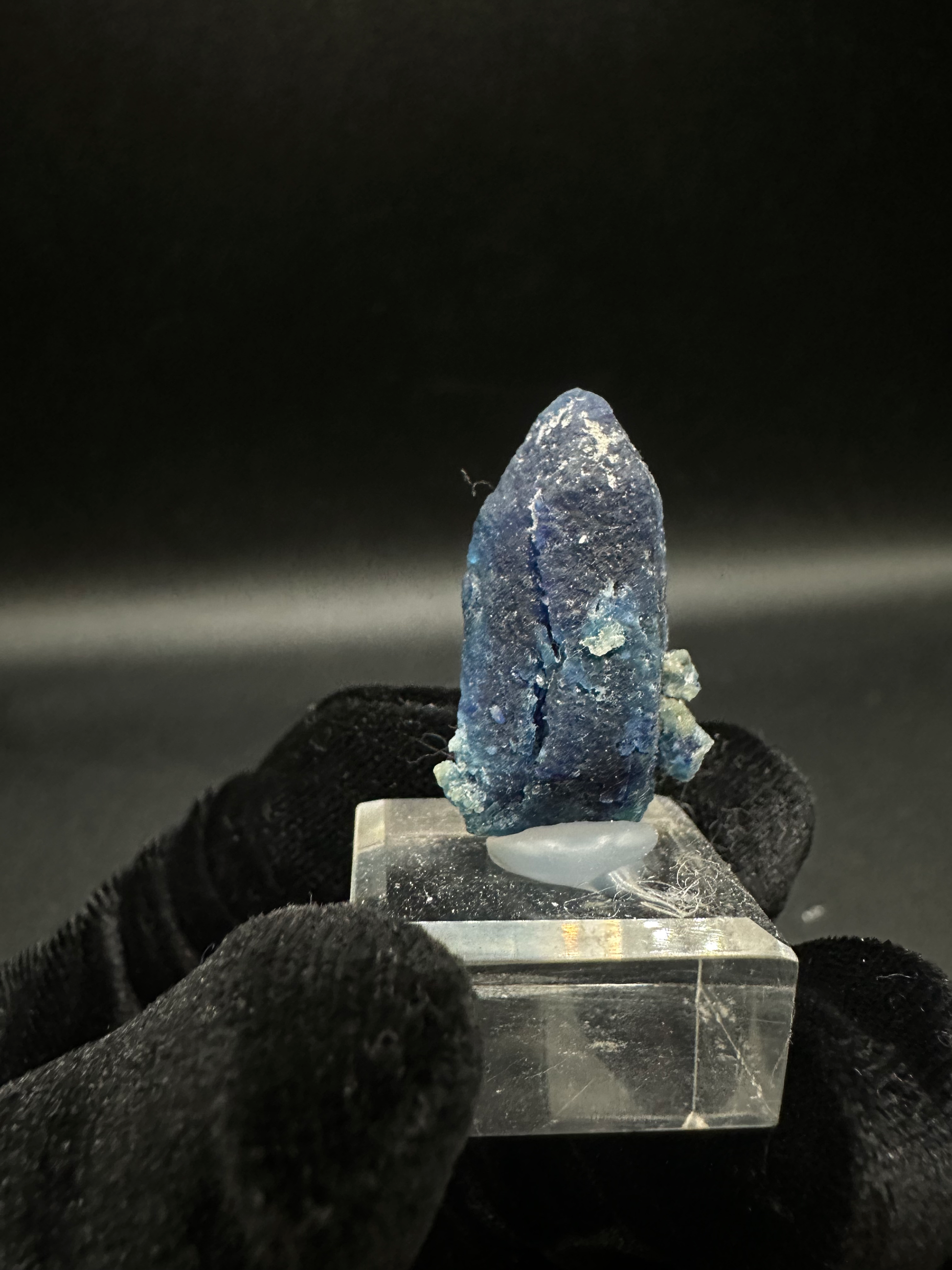 There are very few minerals on Earth that can stop you cold the moment you lay eyes on them ā Afghanite from Sar-e-Sang, Afghanistan is absolutely one of them, a fully terminated hexagonal prism of inky, cobalt-to-indigo blue that looks less like a rock and more like something carved from a midnight sky. This locality is the only place on the planet where display-quality Afghanite crystals of this character are found, making every single piece a genuine rarity in the truest mineralogical sense. Read more below to discover how this beautiful crystal formed in the Earth as well as the metaphysical qualities of the stone. The crystal was displayed with "thumb tack" putty for photography ... the same stuff that your 4th grade teacher stuck papers to the wall with. There is no trace of the non toxic putty left on the crystal when it ships to you. Authenticity guaranteed.